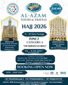 - Pilgrims are responsible for their Zam Zam & luggage until their return to Hyderabad. We can only guide in this regard.
